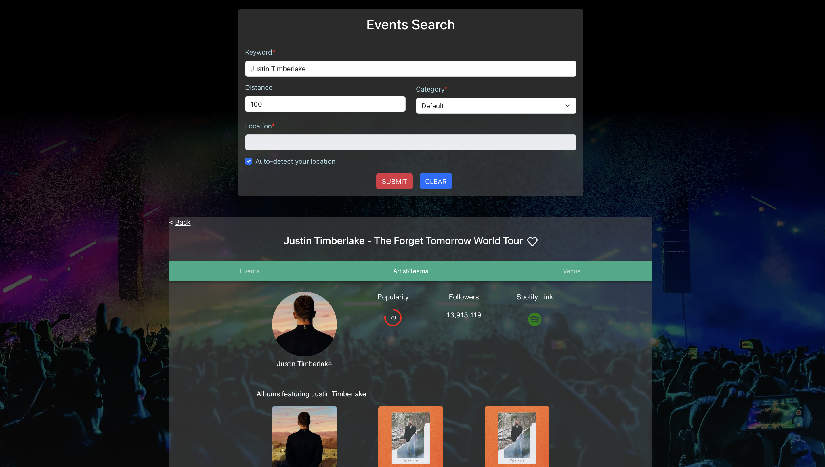 Event-booking website and matching Android app, integrated with Spotify and Ticketmaster APIs, on Google Cloud Platform, facilitating user-friendly event exploration and ticket purchase
