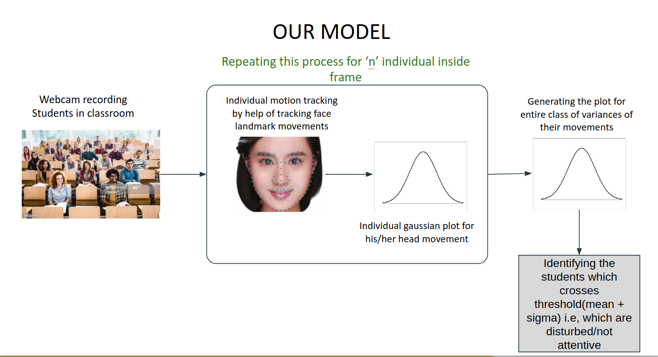 Used combination of classical statistical techniques and computer vision to identify distracted students on the basis of facial landmark position movements. Our paper has been published in INDIACom 2021
